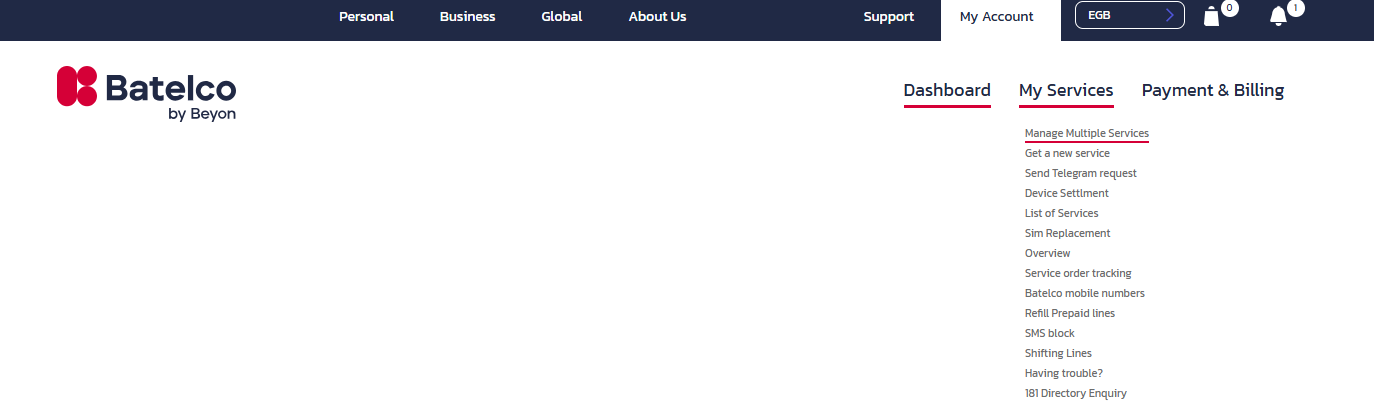 2.From My services Dropdown menu, chose Manage Multiple Services.