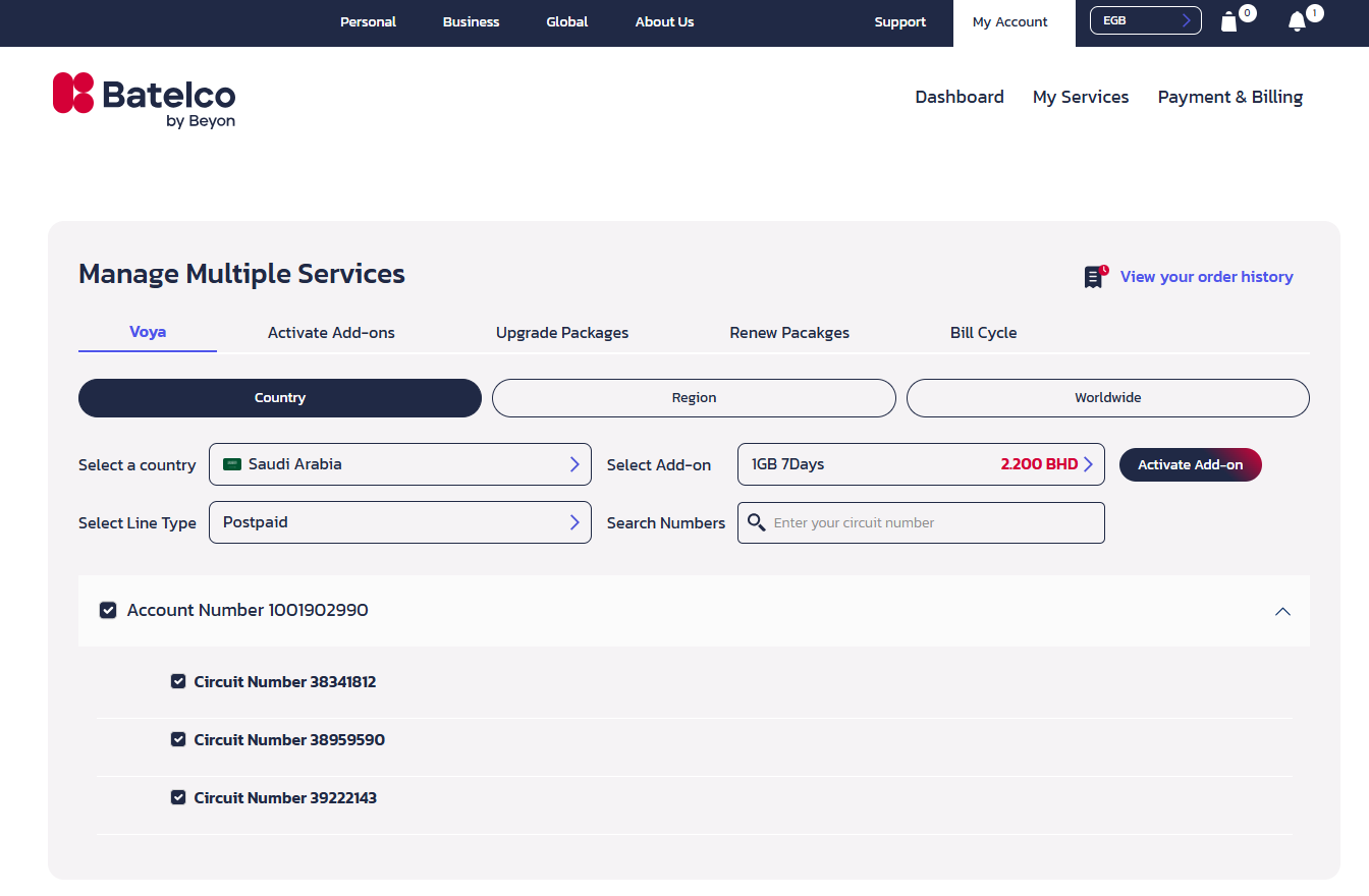 Login to your e-service account https://www.e.batelco.com/eservices/Login - Need help in login?