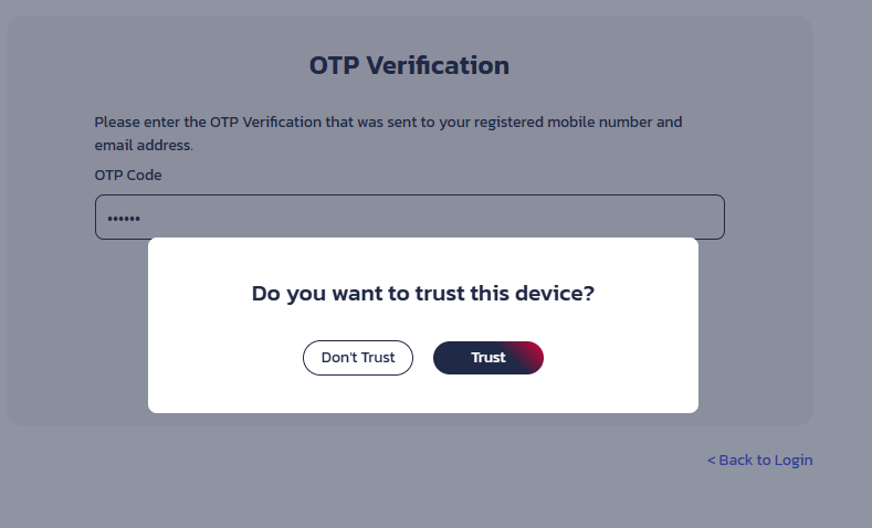 2. You will receive an OTP verification, please enter the OTP code that sent to the contact number and email address registered in the eServices.